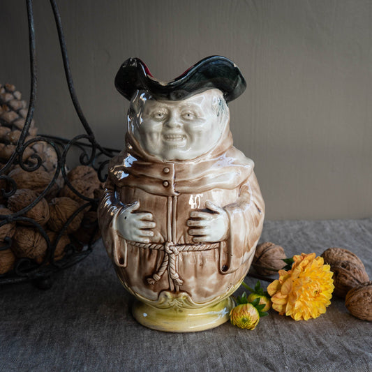 Adorable Laughing Monk Majolica Pitcher - Onnaing - c1890s