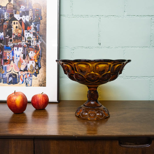 Amber Glass Moon & Stars Pedestal Bowl - LE Smith - c1960s