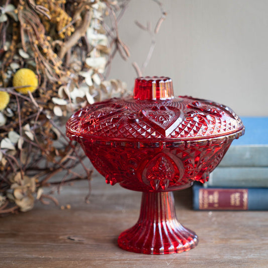 Amberina Footed Glass Bowl with Lid - likely Imperial Glass - 1960s