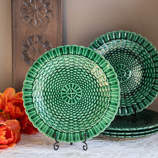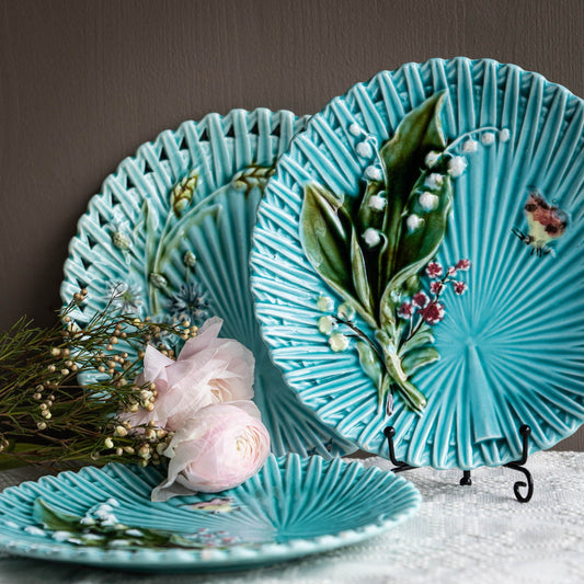 Antique Art Nouveau Light Green Majolica "Lilly of the Valley" Plates - SMF Schramberg - Set of 3 - 1920s