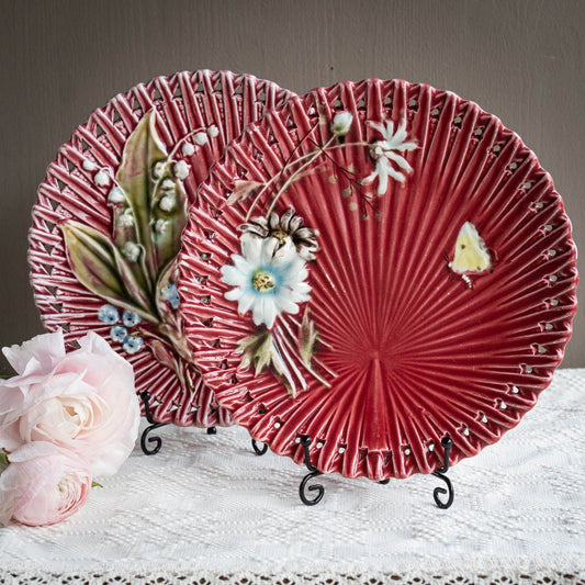 Antique Art Nouveau Pink Majolica Plate - SMF Schramberg - Set of 2 - 1900s