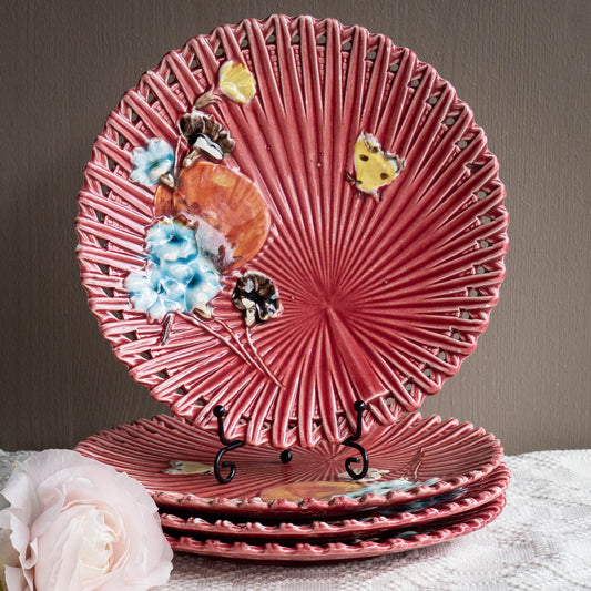 Antique Art Nouveau Pink Majolica Plate - SMF Schramberg - Set of 4 - 1920s