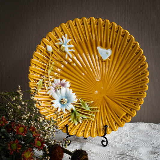 Antique Art Nouveau Yellow Majolica "Marguerite" Plate - SMF Schramberg - 1920s