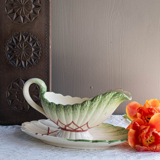 Antique Asparagus Gravy Boat - Sarreguemines - 1870s