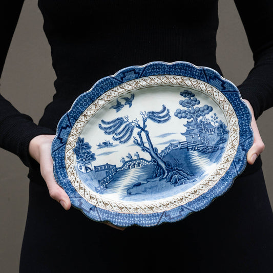Antique "Real Old Willow" Scalloped Serving Plate - A8025 - Booths - 1900s