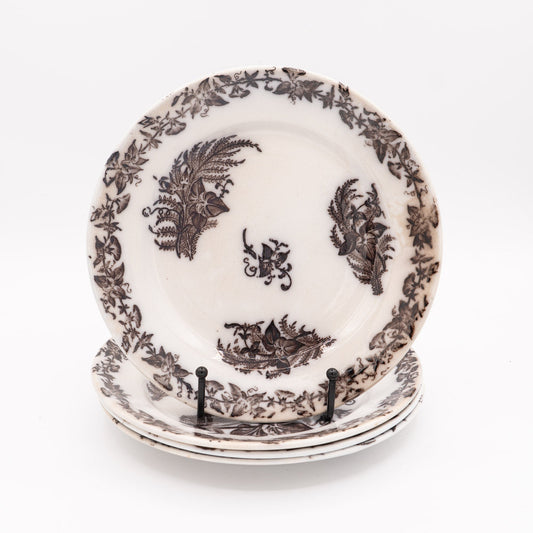 Antique 'Flow Brown' Plates - "Liseron" - FF Pexonne - Set of 4 - 1890s