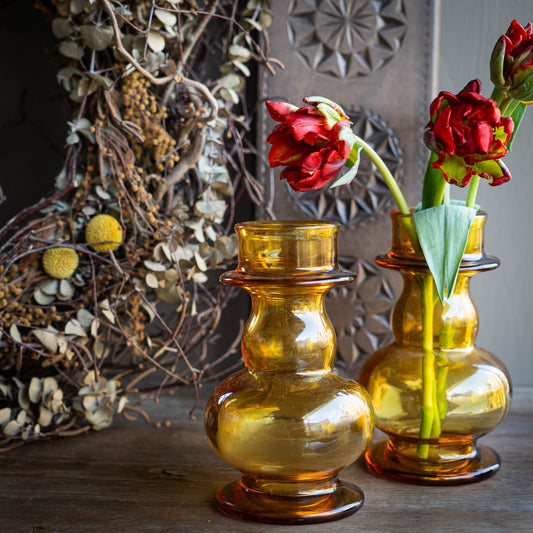 Vintage Amber Hyacinth Vase by Tamara Aladin - Riihimäki Lasi - 1960s - Set of 2