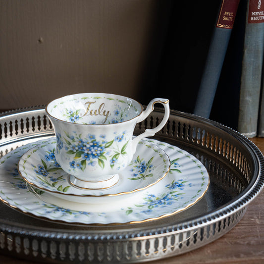 Vintage Forget-me-not Teacup Set with Plate - July - Royal Albert - 1970