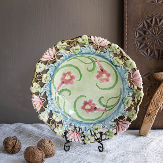 Antique Reticulated Majolica Plate - Villeroy & Boch Schramberg - 1900s