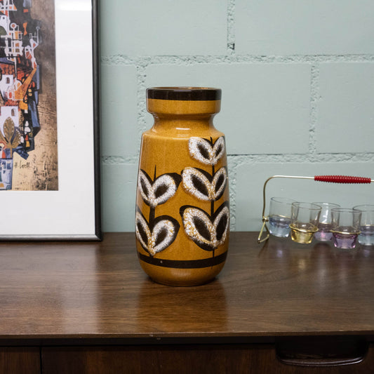 Beautiful Vase in Light Brown with Leave Decor - Form 242-22 - Scheurich - c.1970s