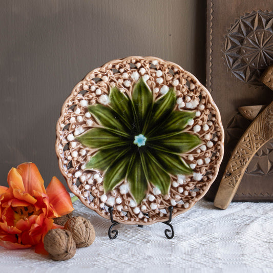 Antique Reticulated Majolica "Lilly of the Valley" Plate - Villeroy & Boch Schramberg - 1900s