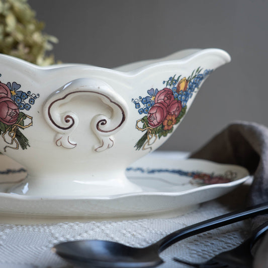 Floral Gravy Boat - Obernai - Sarreguemines - c1940s