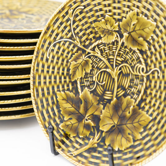 Olive-Green Basketweave & Vine Majolica Plate –Sarreguemines - 1900s