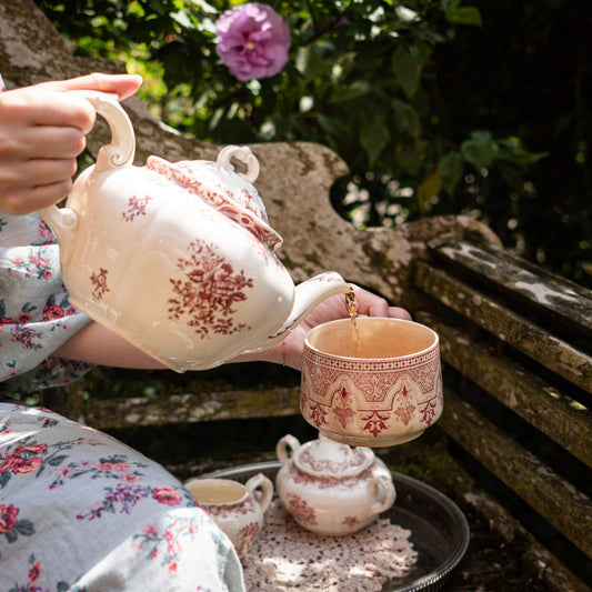 Pink Floral Transferware Tea Pot "Valeria" - Villeroy & Boch - 1920s - Late Victorian / Edwardian revival tradition