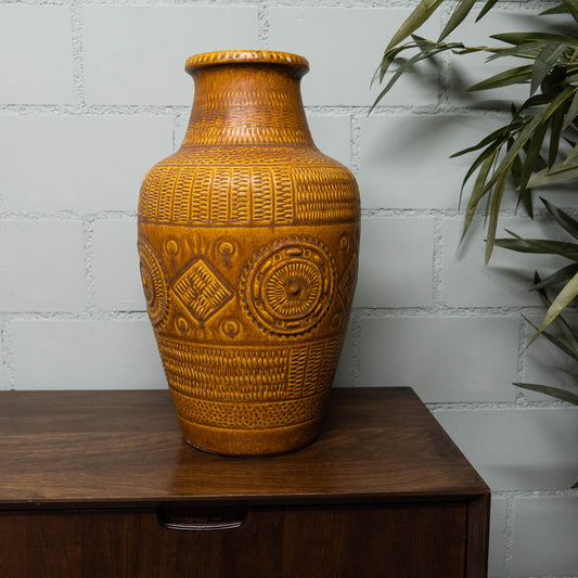 XL Floor Vase 550-45 - Ethnic Decor "Contura" in Light Brown - Bay Keramic - c1970s