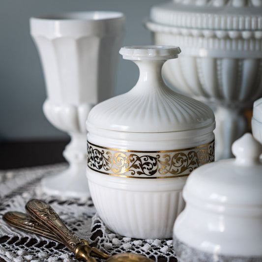 French Opaline Covered Jar with Gilt Scroll Frieze - 1910s