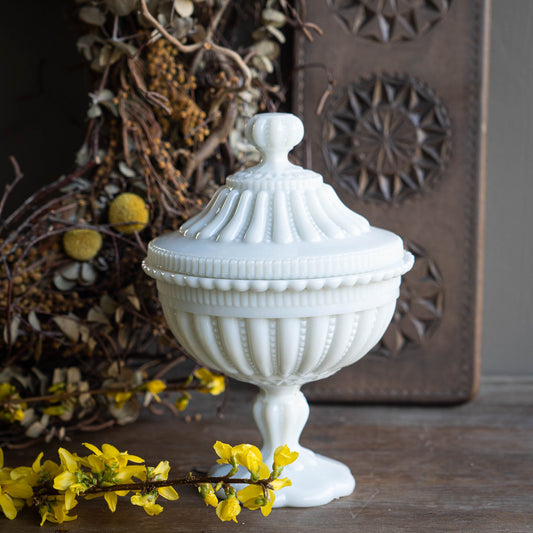 French White Opaline Lidded Candy Bowl - Portieux Vallérysthal - 1930s