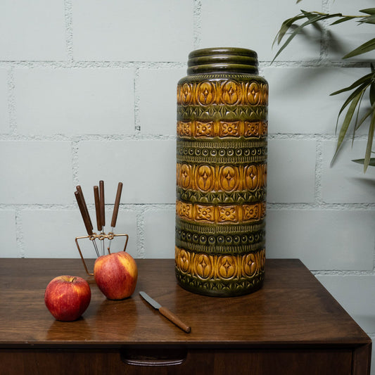 W. German Pottery Floor Vase in Light Brown & Green - Form 289-41 - Scheurich - c1970s