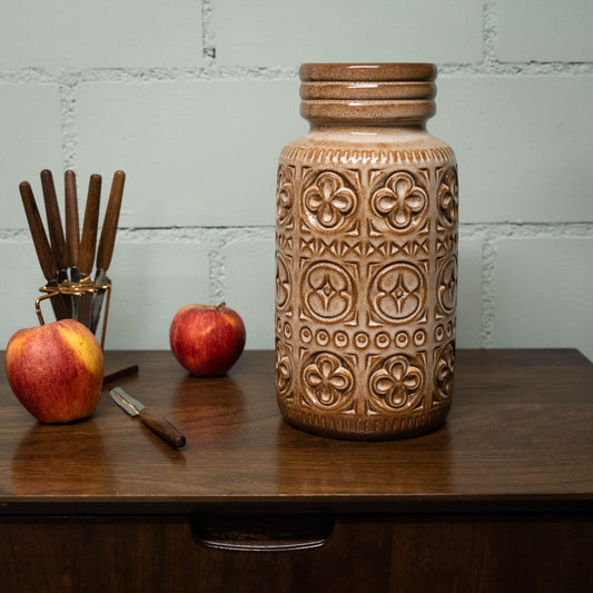 W. German Pottery Vase in Light Brown "Foligno" Decor - Form 289-27 - Scheurich - c1970s