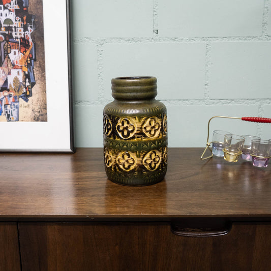W. German Pottery Vase in Light Brown and Green "Foligno" Decor - Form 289-18 - Scheurich - c.1970s